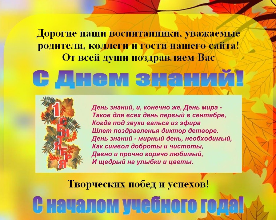 01.09.2022Уважаемые учителя, воспитатели, студенты, ученики, воспитанники детских садов и родители! Поздравляю вас с началом нового учебного года!1 сентября тысячи дошкольников, первоклашек и первокурсников выходят в трудный, но очень интересный путь. Сегодня начинается очередной этап в плодотворной работе педагогов, в постижении учащимися законов науки и общественной жизни, удивительного мира знаний и открытий. На их плечах лежит ответственность за всестороннее обучение и воспитание наших детей.