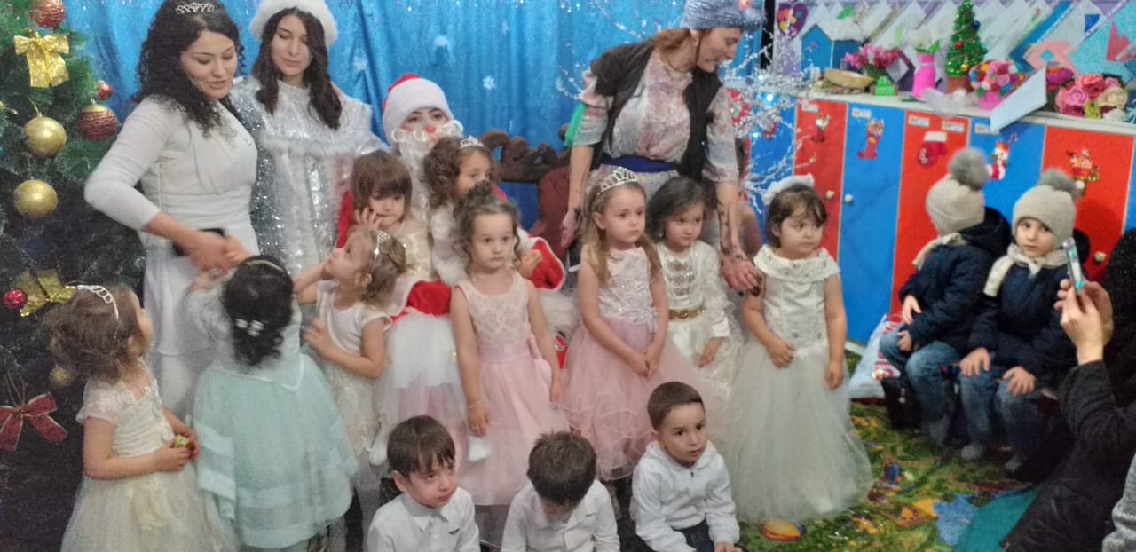В завершении праздника заведующий детским садом Малика Музаева, вместе с Дедом Морозом и Снегурочкой поздравила всех присутствующих с Новым годоми вручили детям подарки.
